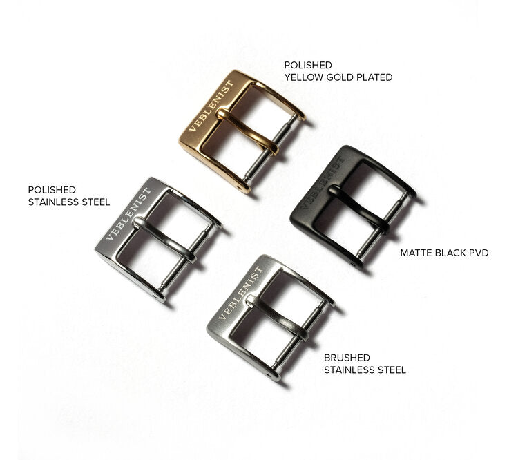 We carry buckles in 14mm, 16mm, 18mm, and 20mm widths. You can use your own buckle.